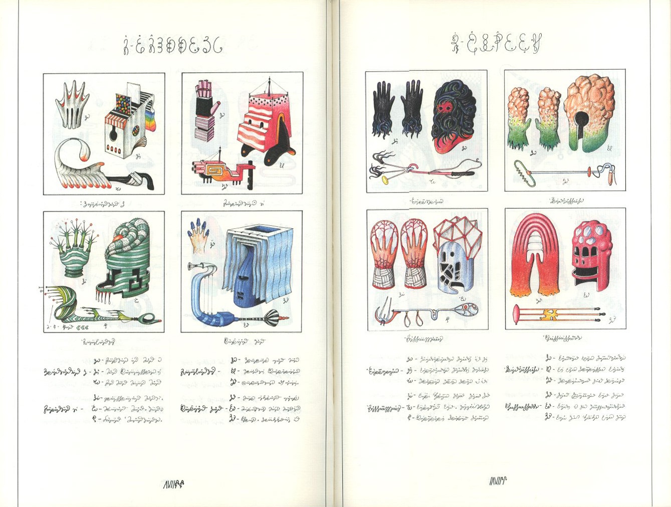 1981年の初版刊行以来、その圧倒的な独創性はアート、デザイン、哲学の境界を越え、世界中のクリエイターに衝撃を与え続けてきました。本書に並ぶのは、既存の生物学や物理法則をあざ笑うかのような異世界の動植物、解剖図、そして奇怪な風俗。それらが精緻なイラストと、誰にも読めない「セラフィニアン語」によって、あたかも実在する百科事典の体裁で綴られています。